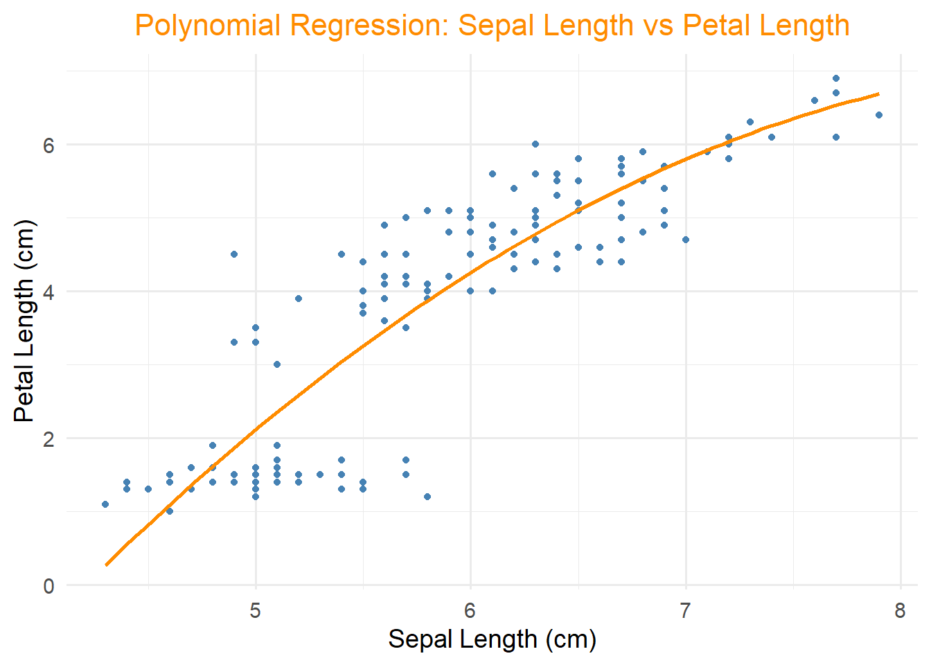 ggtitle("Polynomial Regression: Sepal Length vs Petal Length") +