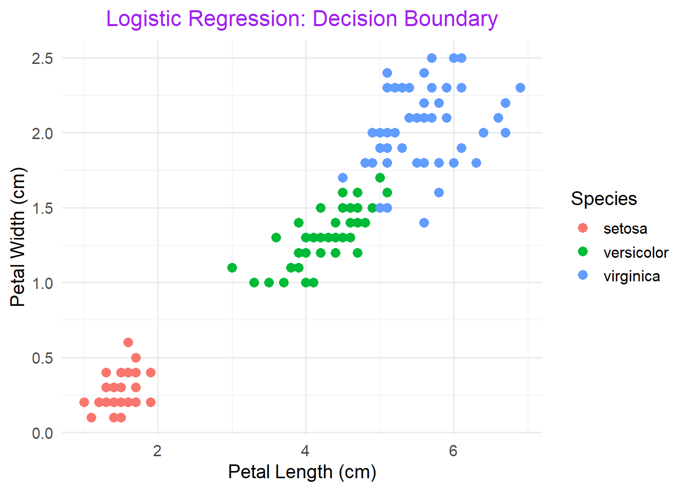 logistic_model <- glm(Species ~ Petal.Length + Petal.Width, data = iris, family = "binomial")