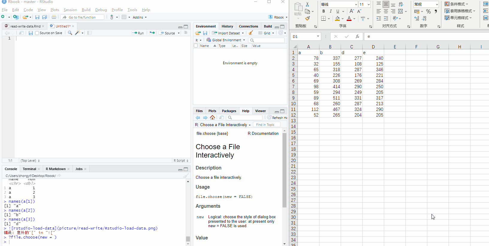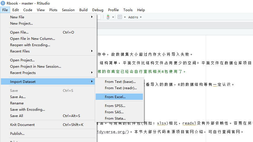 使用 Rstudio 工具栏自带的 import Dataset 或者借助 R 包插件实现数据与 R 的交互。